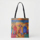 Colourful stylised painting scene of a lively, colourful beach by Popular Artist Lisa Lorenz now Available on an stylish All-Over-Print Tote Bag.