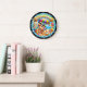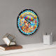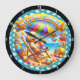 Decorative summer-themed clock with a cheerful puppy relaxing on a beach chair, surrounded by vibrant colours, shells, flowers, and tropical scenery. Perfect for welcoming summer and enhancing your interior decor.