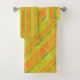 Colourful bath towel set with yellow, orange, lime green pattern will brighten up your bathroom.