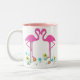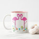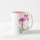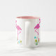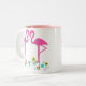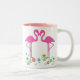 Original graphic artwork of pink flamingo yard stakes with colourful and whimsical flowers. Colourful fun mug that would make nice gifts, even add a few flowers to the mug for a sweet anytime gift.