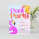 A cute invitation features a pool party. These invitations are easily customised for your event by simply adding your details.