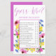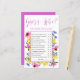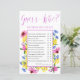 Guess Who is written in a pink trendy bouncing font. Mummy or Daddy is also in pink but using an open serif font. A pink frame surrounds the questions. Summer flowers decorate the frame. They are a colourful pink, blue, purple and yellow daisies, protea and echinacea. This baby shower game is designed to coordinate with the Baby in Bloom collection. Message me if you need help finding a coordinating items. I'm Nelda and I'd love to help!