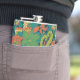 The flask itself is fine. It’s a cheap flask, obviously bought in bulk, however am prepared to overlook that. Given that it is a personalized item, I would have liked to have seen gift boxing instead of the generic packaging. Terrible printing, and/or quality. It’s a cheap, tacky vinyl. It is not cut straight and is also applied in a way that it is overhanging the bottom, causing the glue to catch on items and it will eventually roll and tear, damaging the wrap.