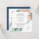 Beautiful watercolor flowers and foliage in trendy shades of pink, peach, white and greens with rose gold corner frame accents, elegant wedding invitation. Back of card features solid blueberry pancake colour. Customise text, font style, colour and size.