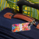 A luggage tag with a colourful collection of spring and summer flowers. Pink orange and blue dominate the colour scheme. Bright and bold floral arrangement exudes happiness. :)