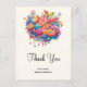 Thank you postcard with a colourful collection of spring and summer flowers. Pink orange and blue dominate the colour scheme. Bright and bold floral arrangement exudes happiness. :)