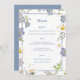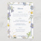 Summer Flowers Blue Wedding Menu designed with petite flowers in soft shades of blue and white, with yellow. The front side text includes: Menu, Appetizer, Entre and Dessert Selections. The reverse text includes: The Bride and Groom's First Names and Wedding Date on a soft blue background. To personalise, simply insert your Wedding Menu Details into our easy template, replacing the sample text. Be sure to view the entire Summer Flowers Blue Wedding Collection for matching cards and accessories.