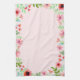 Pink kitchen towel with border of summer flowers. Also with white or blue background.
