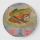 Colorful and vibrant, this is a wonderful summer frog pond original watercolor. The cute frog, painted in green, red and brown, sits on a lily pad looking to see where it is going to hop next. The pond water is a tranquil blue and pretty pink waterlilies float on the surface.
