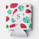 Summer Fruit & Palm Leaf monogram can cooler featuring watermelon, cherry, popsicle and palm leaf patterns!