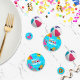 Dive into fun with this cute custom pool table confetti! Perfect for kids and adaptable for any age, this colourful confetti sets the scene for a fun-filled splash-tastic celebration. The largest pieces feature a turquoise pool water background and are dotted with playful icons like a beach umbrella, a pink flamingo float, flip flops, and more, all under the watchful eye of a whimsical sun. The featured text reads: "POOL PARTY" — the 'O’s playfully replaced with beach balls— with the ability to customise them by adding a personalised name above the text. Personalising is a breeze; just click “Personalise this Template” to make them your own. The smaller confetti pieces feature either a pink flamingo and fish float against the vibrant blue pool water background or a playful beach ball. Get ready to make waves with this whimsical table confetti!