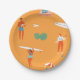 Summer themed plates feature a bold background with people enjoying summer in various ways, surfing, swimming, etc