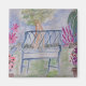 What can be better on a hot summer afternoon than wandering into the garden and relaxing on the bench. In this charming watercolor, the blue bench sits on the lawn surrounded by pretty flowers, lavender and trees. Feel the sun on your face when you choose this soft pastel summer garden bench art.