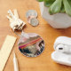 An abstract landscape with unique colours and textures showing a nature landscape with a rising sun and two geese in shades of orange, beige, brown and pink.