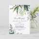 This summer greenery frame all in one wedding invitation is perfect for an elegant midsummer wedding. The botanical design features a lush arrangement of painted watercolor eucalyptus, greenery, and green leaves with subtle sprigs of blush pink blossoms. Save paper by including the details on the back of the wedding invitation instead of on a separate enclosure card. Include the RSVP info as well if your guest will be replying electronically (optional).