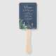 This summer greenery navy wedding program fan is perfect for an elegant midsummer wedding. The botanical design features a lush arrangement of painted watercolor eucalyptus, greenery, and green leaves with subtle sprigs of blush pink blossoms on a navy blue background. Include the name of the bride and groom, the wedding date and location, thank you message, order of service, and bridal party. Order your programs assembled or non-assembled.