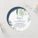 This summer greenery round baptism invitation card is perfect for an elegant midsummer baby dedication. The botanical design features a lush arrangement of painted watercolor eucalyptus, greenery, and green leaves.