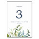 This summer greenery table number is perfect for an elegant midsummer wedding. The botanical design features a lush arrangement of painted watercolor eucalyptus, greenery, and green leaves with subtle sprigs of blush pink blossoms. The card prints on the front and back (double-sided). Add each table number that you need to your cart individually.