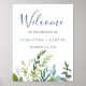 This summer greenery welcome wedding poster is perfect for an elegant midsummer wedding. The botanical design features a lush arrangement of painted watercolor eucalyptus, greenery, and green leaves with subtle sprigs of blush pink blossoms. Customise the poster with the name of the bride and groom, and the date of the wedding.