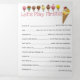 A cute and colourful ice cream illustration design with bright scoops of ice cream in sugar cones scattered around the edge of the invite and rainbow confetti forming a border around your beautiful Childs photo. The outside flap thanks your guests for joining you and the inside has three fun games to play - baby bingo, word scramble and let's play firsts