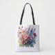 Beautiful floral botanical tote bag with a lovely array of flowers. This tote bag has colours of pink, purple and blue flowers that are arrangement in lovely style bouquet.