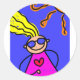 Cute cartoon whimsical illustration of a happy little stick figure girl wearing her sunglasses in the summer weather. Easily customise and choose your own background colour or add text. Image available on various gifts and products.