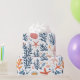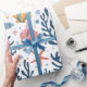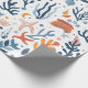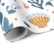 Vibrant seashells and coral summer kid's birthday party gift wrap for a summer pool party birthday.