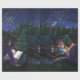 Starry Night art by Traci Van Wagoner print, posters, accessories, and gifts features our original painting of two kids and their big, black dog camping out under the stars reading a fantastical book around a camp fire about knights and dragons. The magic of the story is swirling up into the starry sky to show a knight and a dragon in an eternal nighttime dance of stars. Enjoy a summer night camp out in the mountains.