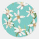 Summer Lemon blossom pattern on teal Classic Round Sticker