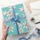 Summer Lemon blossom pattern on teal Wrapping Paper