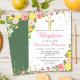 Summer Lemon Greenery Pink Floral Girl Baptism Invitation