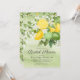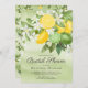 Summer garden wedding bridal shower invitations featuring a green watercolor wash background, citrus lemons & limes, white blossom, botanical foliage, and a elegant bridal party template that is easy to personalise.