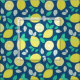 A trendy summer pattern of bright yellow full lemons and lemon slices surrounded in teal and mint coloured leaves, and placed on a lovely navy blue background. This citrus fruit pattern is perfect for summery sun filled days.