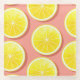 A pattern of fresh & juicy lemon slices in bright, vivid shades of yellow, with a watercolour texture to give it that freshly cut look. They are placed on a salmon pink background for a bright & summery look, like pink lemonade.