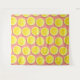 A pattern of fresh & juicy lemon slices in bright, vivid shades of yellow, with a watercolour texture to give it that freshly cut look. They are placed on a salmon pink background for a bright & summery look, like pink lemonade.