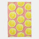A pattern of fresh & juicy lemon slices in bright, vivid shades of yellow, with a watercolour texture to give it that freshly cut look. They are placed on a salmon pink background for a bright & summery look, like pink lemonade.