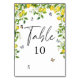 Rustic, boho and modern, this lemon themed wedding table number card features a brightly coloured arch of beautiful lemon tree branches with butterflies flying around.