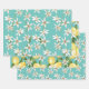 Summer Lemons and blossom patterns on teal Wrapping Paper Sheet