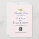 This wedding invitation collection suite is beautifully designed with watercolor illustrations of fresh lemons and leaves. The mixed colours of the watercolor create a calming and elegant backdrop for the design suite. The fonts used for the text are sleek and refined, adding a touch of sophistication to the design.