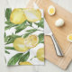 Summer lemons and lemon blossom pattern tea towel