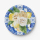 Summer Mediterranean lemon and flowers tile print Paper Plate