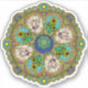 Art Nouveau arches surround the stained glass inspired layers of this mandala, featuring fireworks, sunflowers, seashells, suns, and storms in bright colours to fully embody the feelings of activity that come with summer.