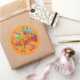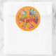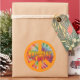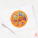 Round sticker to match our “Summer of Love Peace Sign” invitation with an image of an orange peace sign and the sentiment “Summer of Love” in fun, 60s-style lettering on summery rainbow tie dye. The Summer of Love was a social phenomenon that occurred during the summer of 1967, when as many as 100,000 people, mostly young people sporting hippie fashions of dress and behaviour, converged in San Francisco's neighbourhood of Haight-Ashbury. See matching custom-cut vinyl sticker, invitation, envelopes, favour bag, favour tag and wrapping paper. See the entire Psychedelic 60s Sticker collection in the INVITES | Stickers & Labels section.