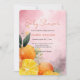 Invite your guests to your baby shower with this orange citrus fruits Baby Shower invitation with watercolor oranges foilage and a patterned background. Perfect for any summer event!