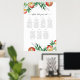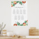 Summer Orchard Seating Plan with 7 Table settings. A fun, bright, but sophisticated design, that will work so well with a summer garden or orchard theme. Gentle watercolour artwork with blush oranges and yellows, and dusky greens, with delicate white flowers.