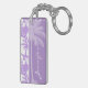 Summer Palm; Bright Lavender Tropical Hibiscus Key Ring
