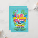 A stylish, affordable design to celebrate any summer event. The blue, grunge background features fern leaves, a flamingo, beach balls, boombox and splashes of water.