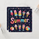 Bright and colourful popsicles, ice cream cones, and refreshing drinks are arranged around the word "Summer," creating a lively and festive atmosphere.