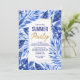 A lovely summer party invitation, in blue and white, with watercolor foliage. (<a href='https://www.freepik.com/free-photos-vectors/poster'>Poster vector created by pikisuperstar - www.freepik.com</a>). <br/><br/>The card is easy to customise with your wording, font and font colour.<br/><br/>Not exactly what you're looking for? All our products can be custom designed to meet your needs at no extra charge.<br/><br/>Simply contact us at heartfelthelper@gmail.com.<br/><br/>Coordinating products available: Just ask us!