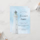 An invitation for a nautical coastal by the sea summer party, beach party. A light blue sky as background and a white lighthouse as decoration. Templates for your party details, information.